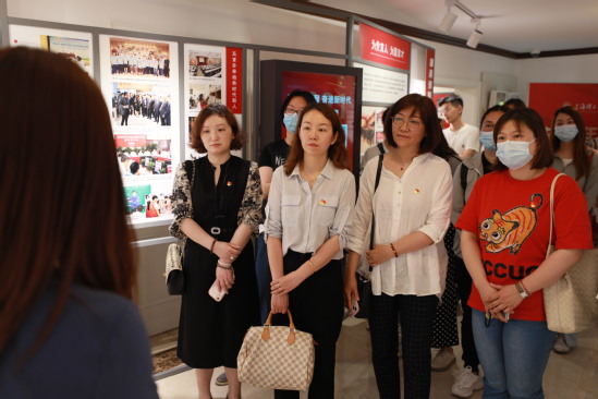 怀德路第一小学教师在刘湛恩烈士故居红色文化主题馆前合影 “行走”之一——红色文化资源补足精神之钙 人文行走的第一站,老师们来到刘湛恩烈士故居红色文化主题馆,参观这座意义非凡的老建筑,感受上理工师生代代传承着的宝贵红色文化基因。 在现场讲解员和大学生志愿者的娓娓讲述中,老师们深深感受到了在上理工百十余年的发展进程中,以刘湛恩老校长为代表的革命烈士和仁人志士谱写了一部牺牲救国、工业立国、科教兴国的历史。大家纷纷表示,这些红色校史和113件展陈实物,是开展“大思政课”最生动的教科书。“朴素而简洁的书房,一件件展陈实物,仿佛把我带到那个战火硝烟的年代,老一辈教育家精忠报国、满腔热血、矢志不渝为国富民强而奋斗,躬自任教、开风气先、救亡图存致力于中国化教育的胆识和魄力让人深感钦佩。身为新时代的教育人,我将信心满满、干劲十足,用一颗赤诚之心,播撒爱的甘露,在平凡的教育岗位上奉献自己的光和热。”怀一小学党员教师冯芸婧感言道。 随后,在这个展示、传播上理工百年红色文化的“初心之地”,马克思主义学院青年教师、第五届上海高校青教赛一等奖获得者王丽老师带来了一堂“微党课”,她以“弘扬爱国主义精神 勇担大学时代使命”为题开启宣讲。