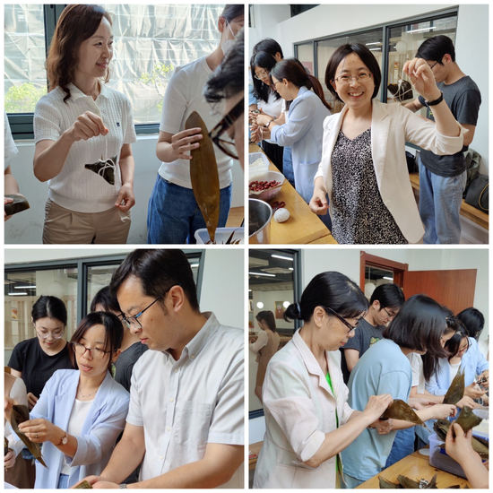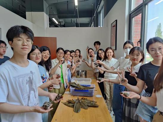 为学习习近平总书记在文化传承发展座谈会上的重要讲话精神,更有力地推进中国特色社会主义文化建设,建设中华民族现代文明,6月21日下午,健康学院在思餐厅三楼举办“万水千山‘粽’是情,佳节临行暖人心”端午节包粽子活动。学院党委书记姚秀雯,校特邀党建组织员、学院原党委书记黄慧,学院党委副书记孔夏萌以及辅导员、22级国粮院联培生们一起参加包粽子活动。 活动现场,工作人员将提前准备好的粽叶、糯米、蜜枣、猪肉等新鲜食材整齐地摆放在桌子上,大家围在一起捋粽叶、填糯米、封口、捆扎,巧手翻飞,一个个独具风格的粽子呈现在大家眼前。片片粽叶散发着清香,粒粒糯米寄托着温情,欢声笑语充满整个餐厅。 在等待粽子出锅的时候,老师们与22级国粮院联培生们围坐在一起,互相交流着未来的规划。联培生们表示,大家即将前往北京,在国家粮食和物资储备局科学研究院进行下一阶段的学习,这次活动增进了师生和同学间的相互了解,建立了更为深厚的友谊。黄慧积极关心同学们的发展规划,鼓励同学们将在学院学习的知识和理念运用到未来工作中,为我国粮食行业的发展作出贡献。孔夏萌对联培生们寄予厚望,希望大家努力投入科研,高标准严要求进行学术训练,多出创新成果,为国家建设和粮食行业服务,同时在京也要注意安全,互帮互助。 此次活动带领学生们品味端午传统文化,体验了劳动的快乐,增强了大家对中国传统文化的传承与认知,同时,也让即将去往北京的22级国粮院联培生们感受到了学院的温暖,增强了集体凝聚力。