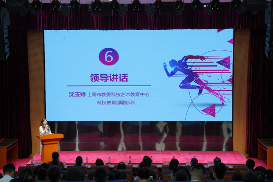 开学典礼现场 最后,沈玉婷代表上海市青少年科学创新实践工作站总站对上海理工大学环境科学与工程实践工作站第八期顺利开学表示祝贺,她表示上海理工大学环境科学与工程实践工作站是市教委和市科委最早设立的25个工作站之一,在过去7期高中生的创新课题培养过程中,积累了丰富的青少年科创教育实践经验。感谢上海理工大学环境与建筑学院的导师团队们付出了极大的热情培养每一个进站高中生,感谢学校和有关单位的大力支持。祝愿同学们在上海理工大学科创平台资源支持下,学有所获,勇攀科创高峰。