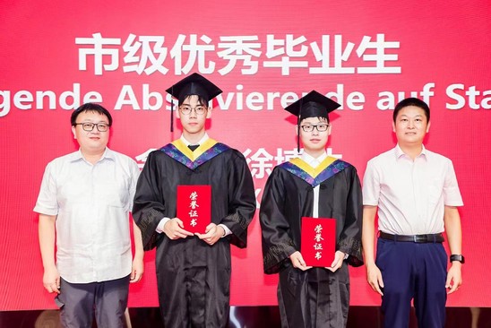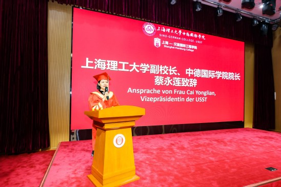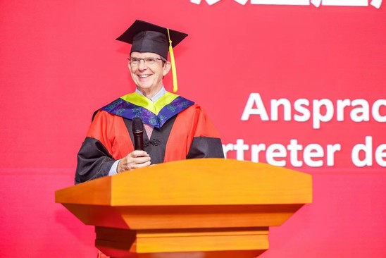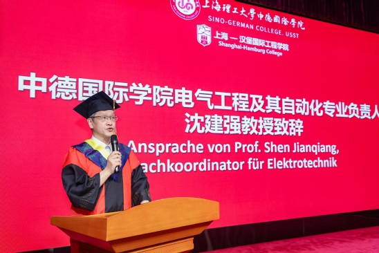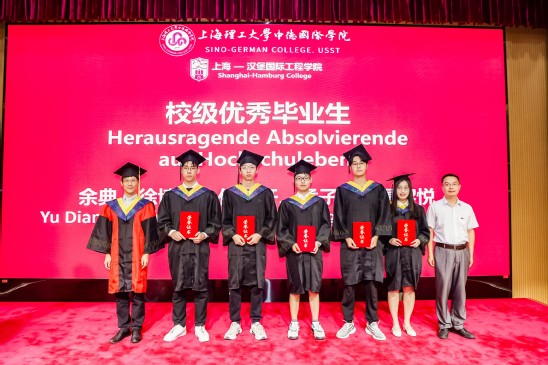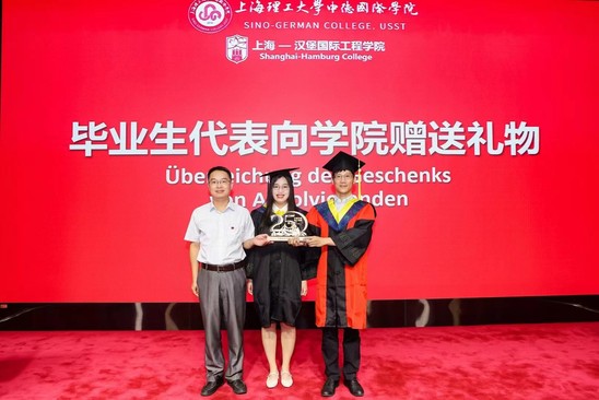 在迎接学院建院二十五周年之际,7月5日下午,中德国际学院2023届毕业典礼暨学位授予仪式在国合楼五楼报告厅举行。副校长、中德国际学院院长蔡永莲,中德国际学院联合管理委员会委员、上海-汉堡国际工程学院德方负责人Michael Röther,学院党委书记范正飞,党委副书记、常务副院长陈琦,党委副书记、副院长徐芳,本科生院、学生处、国际交流处、机械工程学院、管理学院及中英国际学院领导和业务负责人,中德国际学院教师代表,全体2023届毕业生及家长,2023级春招电气专业学生及家长代表齐聚一堂,共同见证这庄严又温馨的时刻。 寄语,砥砺青春不负使命 蔡永莲代表学校向毕业生们表示诚挚祝贺,深情寄语2023届毕业生们:今年恰逢中德国际学院建院25周年,作为中德两国教育合作的先锋,学院以中国和德国两国卓越的教育资源为基础,通过双边教学、学生交换和深度合作研究,培养了一批又一批具备国际视野和创新能力的人才,校友们在各自领域取得了一系列引人瞩目的成就,成为彰显中德友谊的亮丽名片,大家身份将由学生转变为校友,但不变的是上理人的身份;谨记校训“信义勤爱,思学志远”,把校训装进行囊,在未来的人生道路上,始终保持正直的品性和善良的品质,终身学习、不断进取,成为最好的自己;希望毕业生们永葆热爱之心,热爱所从事的事业、热爱他人、热爱社会;着力锤炼品德修为、筑牢道德根基,在纷繁复杂的社会环境中心存定力,明大德、严私德,不负韶华、不负时代。 上海-汉堡国际工程学院德方负责人德国汉堡应用技术大学Michael Röther教授在致辞中表示:“由于疫情,我们共同经历了一个不同寻常的学习阶段,很多课程只能线上进行,你们也没有机会来到汉堡——这个上海的姊妹城市逗留。这一切,令人颇为遗憾。但是,在面临专业知识、德语零基础的双重挑战以及疫情带来的诸多不便时,你们通过努力和坚持证明了自己,见证了中德两国高等教育的成功合作,热切希望你们能在以后的日子里,继续与教授们、与学院保持联络,衷心祝愿你们未来一切顺利。” 电气工程及其自动化专业中方负责人沈建强教授和德方负责人Gustav Vaupel教授分别致辞,共同祝福同学们一帆风顺、前程似锦。 拨穗,开启崭新人生篇章 徐芳宣读《关于表彰2023届市级和校级优秀毕业生的决定》,本科生院院长甘屹、学生处处长何炉进、学院党委书记范正飞分别为优秀毕业生们颁奖。 徐芳宣读2023届中德国际学院校友联络员名单,范正飞颁发校友联络员聘书,希冀他们未来能做好毕业生与母校之间的情感纽带,持续关注母校发展。 华北石油商业公司党群工作部主任孟宪锋作为2023届毕业生家长代表上台发言,对学院四年来为学生付出心血和汗水的全体老师表示衷心感谢,同时祝贺全体同学开启人生新的精彩篇章。毕业生代表余典同学发言,感谢学院的悉心培养,表示今后自己将不断拓展自己的国际化视野,争做国之栋梁。 范正飞、陈琦代表学院接受毕业生代表向母校赠送的纪念品——中德精神“同心同德”水晶牌,庆祝学院成立25周年,期待学院蓬勃发展,再创辉煌。 蔡永莲、陈琦、Michael Röther、电气专业负责人及教师共同将学位证书授予毕业生,并为学子们拨穗正冠,见证他们开启人生的崭新篇章。 祝愿2023届中德国际学院毕业生在梦想绽放的岁月里,拥有各自的绚烂和精彩。