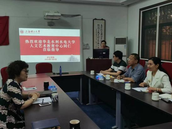 7月9日上午,华北水利水电大学人文艺术教育中心主任韩玉洁一行到访沪江学院。学院党总支书记、常务副院长陈红,音乐系主任李花,办公主任潘轶菁热情接待并参加交流座谈,陈红主持座谈会。 会上,陈红代表学院对华北水利水电大学人文艺术教育中心来访表示热烈欢迎,并从2017年学院新组建以来人文通识教育课程体系、艺术美育建设成果、师资队伍建设、科研激励措施等方面进行了详细介绍。校领导一直高度重视美育工作,前瞻布局,近年来学校取得了比较突出的建设成果,介绍了人文通识教育、美育工作机制体制的发展规划和建设思路,希望未来双方能够开展更加紧密的交流与合作。 韩玉洁对学院的热情接待表示感谢,她围绕华北水利水电大学人文艺术教育中心的历史沿革、优势特点、师资队伍、未来发展等情况作简单介绍。她表示,沪江学院是一个年轻但特色显著的学院,近年来通识教育发展成果突出,尤其是在美育教育、参加大艺展方面有着较为丰富的经验。此次来访,在理工科大学通识教育体系建设、美育工作、师资队伍建设等方面,学习了先进经验,扩展了视野,希望双方能够加深合作。 座谈交流过程中,双方就人文通识教育课程建设、科研激励机制、艺术教学实践与学生竞赛相结合等相关问题进行了深入研讨。会后,韩玉洁一行参观了沪江学院音乐堂。