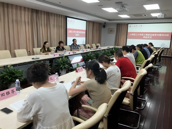 7月7日下午,上海理工大学第三期建言献策专题培训班结业仪式在格致堂108会议室举行,校党委常委、党委组织部(统战部)部长孙红,党委组织部(统战部)副部长樊小军,校党校教务长、副处级组织员任惠兰,以及培训班学员参加结业仪式。结业仪式由樊小军主持。 樊小军回顾总结了本期培训班的主要内容和办班特点。学校知联会理事、无党派人士、理学院教师彭伟敏,民革党员、光子芯片研究院教师王艺盟两位学员代表进行交流发言。学员们一致认为,通过此次培训,全面深入学习了习近平总书记关于加强和改进统一战线工作的重要思想,对新时代统战工作有了更深的认识,对社情民意和资政报告的撰写要领和撰写方法有了进一步了解,收获颇丰。 孙红在讲话中指出,在全党如火如荼开展学习贯彻习近平新时代中国特色社会主义思想主题教育之际,学校党委举办本次培训班,也是落实各民主党派、无党派人士和党外知识分子开展“凝心铸魂强根基、团结奋进新征程”主题教育的重要工作之一,各民主党派、无党派人士和党外知识分子要深刻认识开展主题教育的重要意义,准确把握目标任务要求。她对民主党派和统战团体成员提出三点要求:一是加强理论学习,增强四个自信,不断提升政治素养。要坚持以习近平新时代中国特色社会主义思想为指导,全面贯彻落实习近平总书记关于统一战线工作的重要思想和党的二十大精神,坚决拥护中国共产党的领导,增强四个自信,不断提升政治判断力、政治领悟力和政治执行力。二是加强合作交流,坚持统战思维,不断提升个人素质。要珍视统一战线提供的广阔舞台,进一步增强各民主党派、统战团体及成员之间的联系与合作,加强与市区和兄弟高校统一战线的沟通和协作,以统一战线工作理念汇聚力量,把个人发展和学校发展、党派发展紧密结合起来,多作贡献,在干事创业中不断提升个人综合素质。三是加强实践调研,坚持知行合一,不断提升履职能力。要胸怀大局,关注社会民生,关心学校发展,运用自身专业知识和学科优势,认真开展调查研究,积极撰写并提交高质量的提案议案或者社情民意报告,不断扩大和提升学校在上海市以及各民主党派、统战团体中的影响力,为学校事业发展贡献智慧和力量。 本次培训班坚持区校联动、校际联动、资源共享。6月28日,学校党委统战部与杨浦区委统战部联合邀请了上海市政协常委、市政协文卫体委员会副主任,上海新的社会阶层研究中心专家、华东师范大学教授陈海波为学员作“新阶层人士的文化向善与文化自信”主题辅导报告;6月30日,邀请民建中央全国参政议政先进个人、民建中央全国社情民意工作先进个人、上海海事大学法学院副院长(主持工作)殷骏,杨浦区政协委员、致公党中央参政议政先进个人沈小娟与学员分享参政议政、建言献策方面的经验和体会;7月6日,培训班学员参加复旦大学党委统战部与杨浦区委统战部联合举办的“同舟讲坛暨第五期光华同心大讲堂报告会”,邀请复旦大学管理学院陆雄文院长做主题为“统一战线与管理的价值”的专题讲座。报告会前,学员参观了复旦大学《共产党宣言》展示馆(望道馆),实地感受统战文化、触摸精神瑰宝,从望老团结引领知识分子、与民主党派人士交往的统战故事,感悟大师们追求真理、克难攻坚、爱国奉献、矢志不渝的精神风范,汲取了履职尽责、岗位建功的强大动力。