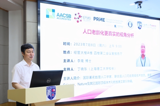 7月8日,我校邀请国际著名人口学家、联合国人口司原高级技术官员李南博士作题为“人口老龄化更加真实的视角”的学术报告。我校相关学科师生及管理学院公共管理学科优秀夏令营学子等参加报告会。报告会由校长丁晓东主持。