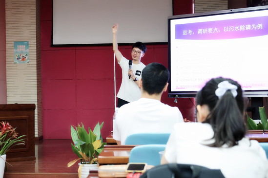 李小丹指导物理系学生参加各类创新大赛 以学生为“镜” 教师时时自省让专业更“接地气” 作为上海市教委和上海市科委最早设立的25个青少年科学创新实践工作站之一,7月初,学校环境科学与工程实践工作站迎来了上海53所高中的110名学生,开启了第八期环境科学与工程领域实践课程。 “在我入职上理工的十余年里,我的学生不仅有大学的‘90后’‘00后’,也有来自中小学的‘10后’,他们有着各自接收知识的方式和特点,也推动着我们针对不同的学生群体开展科创教育。”上海市青少年科学研究院专职导师、环建学院谷麟老师表示。每年暑期,他都会把自己当做一名“新学员”,重新讲授《环境科学导论》《环境工程材料》两门课的核心知识。“用不同学生的视角去审视这些课程,我会得到不同的感想和收获,有时候我们还能从中小学生那里获得更‘接地气’的新灵感,再带领大学生、研究生一起把灵感深化发展成专业领域可应用的成果。”