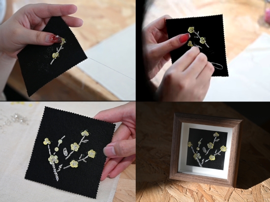 参观顺美陶瓷文化世界及DIY陶瓷素坯彩绘 珠光闪耀,传承华彩——探索厦门珠绣的绚烂世界 珠绣是厦门地区传承千年的一种传统手工刺绣技艺,被列入国家级非物质文化遗产,通常使用彩色丝线和各种珠饰展现出花鸟、山水等多样而精美的纹样。 实践团队走访了厦门珠绣工作室,就如何既保留非遗工艺的独特性又兼具传承发展的普适性等问题与省级非物质文化遗产代表性传承人谢丽瑜的徒弟谢伟瑜老师进行了深入交流,探讨了珠绣艺术在传承中的难点、痛点,并在传承人的指导下亲手体验制作珠绣作品。 珠绣艺术绚丽多彩的图案和细腻的纹理令人赞叹,其与衣服、鞋子融合的新国潮也引发实践团同学们的认真思考。