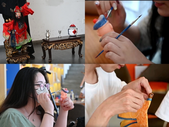 经典木偶剧《钟馗醉酒》表演现场及制作掌中木偶 此外,实践团成员们走进泉州市木偶剧团,了解剧团发展情况,采访了泉州市木偶剧团、国家二级演员戴勋,共同探讨木偶戏发展过程中所经历的低谷期和转型,以及现阶段剧团在校园美育建设与非遗传承领域的新融合、新发展。