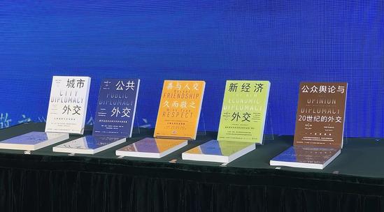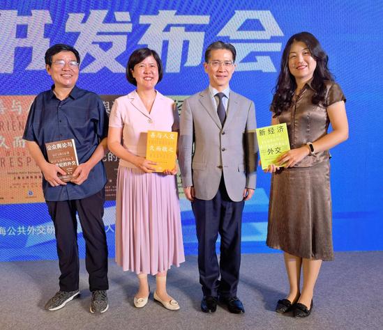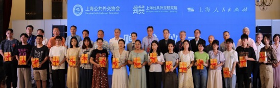 如何提高我国公共外交研究的理论水平和实际工作能力?如何更好地讲好中国故事、提升中国的国际形象和话语权?面对这些时代命题,上海公共外交研究院在译著出版和著作撰写上进行了积极尝试。8月16日下午,在2023上海书展首日,研究院联合上海公共外交协会和上海人民出版社在上海展览中心友谊会堂一楼大厅举办了《善与人交 久而敬之》、“公共外交译丛”新书发布会。由全国政协常委、上海市政协原副主席、上海公共外交协会会长、上海公共外交研究院理事长周汉民主编、上海公共外交研究院编委会成员及专家咨询委员会全体专家参与撰写整理而成的《善与人交 久而敬之——上海公共外交实践》,以及上海公共外交研究院策划的国内首套“公共外交译丛”的最新译著《公众舆论与20世纪的外交》《新经济外交》与2022年出版的首批译著《公共外交》、《城市外交》集体亮相。
