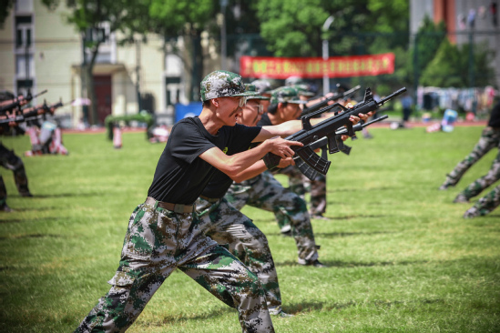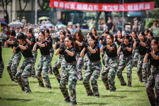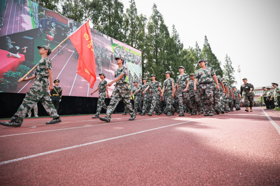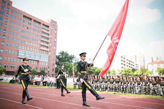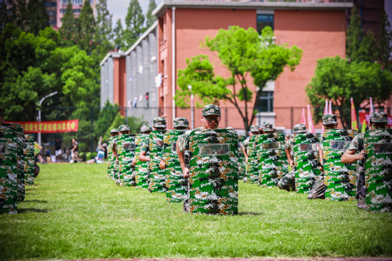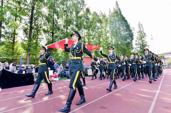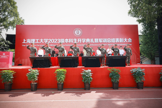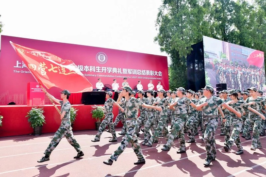 校长丁晓东以“未来工程人才,从上理出发”为题发表讲话 在军训会操表演环节,军乐队演奏、队列示范、刺杀操、女子匕首操、擒敌拳、应急棍术、警棍盾牌操、战术、武警教官摔擒项目等9个表演科目轮流展示,展现了不畏艰难、勇往直前的坚定信念,展现了过硬的军事素质与本领。 “我们穿越历史,我们走向未来,我们回望一路走来的繁花与荆棘,踏着时代的脚步,以科教兴国为重任,以民族复兴为使命,奔向光明而美好的明天。”最后,全体师生在校歌声中欢送带训教官。 军训已然结束,青春的脚步永不停歇,上理青年,不负荣光。愿每位上理人都能践行“信义勤爱 思学志远”的校训精神,心怀报国之志,从这“理”出发,走向更大的世界。