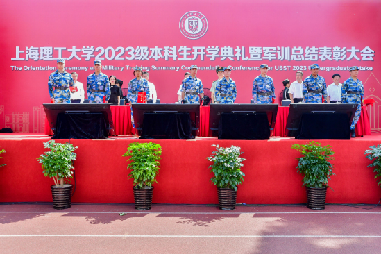 露华秋浓沪江畔,上理学子展风华。9月8日上午,上海理工大学2023级本科生开学典礼暨军训总结表彰大会在军工路334号校区操场举行,并在学校官方微信视频号、抖音、哔哩哔哩等平台同时进行直播,线上观看总人次超8万。 校长丁晓东,武警上海总队某部领导,校党委副书记、副校长盛春,校党委副书记、纪委书记赵宁,副校长陈斌,副校长蔡永莲,总会计师赵明,副校长张华等领导出席开学典礼。学校相关职能部处负责人、各学院党政领导、教师、辅导员老师、老生代表、武警上海总队某部带训官兵、学校退伍大学生教官及全体2023级本科生参加大会,大会由盛春主持。
