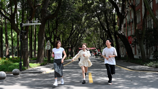 三胞胎兄妹奔跑在湛恩大道 为了实现一起考上理这个“小目标”,三胞胎结成了“学习搭子”,相互督促,共同进步。从清晨起床晨读、吃饭间隙的“你问我答”,到理论知识复习、睡前的“总结时间”,他们制定了严格的每日学习计划表,如果小组里有谁偷懒或是落下进度,就会感受另外两个人的“同胞压力”。 “我们把这种模式称之为‘良性内卷’,从而取长补短、共同进步。”陈凯越介绍说,根据三个人的长处和短板,他们还各有学习分工,例如妹妹陈凯欣理论比较扎实,就担任理论方面的“小老师”,哥哥陈卓素描相对优秀,就成了姐妹俩的绘画“顾问”。 来到上理校园,三胞胎兄妹又站到了新的起跑线前。陈卓感慨:“我们三个的专业分别是动画、产品设计和视觉传媒,都是更考验自身能力而不是只看文凭的,所以后面大学生活我们会继续你追我赶,看谁跑得快!”