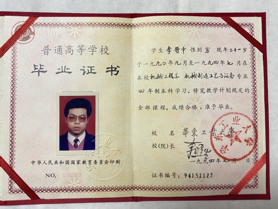 李千一父亲李晋中的毕业证书 听完父亲的上理求学故事,李千一踏入校园时,多了一份亲切感和使命感。“优秀是不能遗传的,但是良好的校风和家风可以传承。现在成了爸爸的学弟,想到他也在这座美丽的校园里勤学苦读过,我心里充满了前行的力量。” 如今,校园里的基础设施已经大变样,但李千一此刻的心境和当年的父亲有了相似的重合,他选择了国别与区域作为研究方向,“语言本身其实是工具,希望在研究生阶段的学习中好好沉淀自己、开阔视野,为以后讲好中国故事、成为跨文化交流的使者做准备。”
