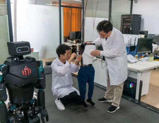 余慧杰老师指导学生做实验 科研之路道阻且长,学校里争分夺秒投身研究的师生们还有很多,走进先进制造大楼机器智能研究院,健康学院学生甘文聪在导师李清都的指导下,正在进行双足机器人行走控制实验。今年8月,团队研发的“小贝4.0”突破传统双足机器人弯腿行走、步幅小、大平脚等技术难点,在世界人工智能大会上得到了行业内外及媒体的广泛关注。对科研的热爱与执着,由像甘文聪一样的上理科研人薪火相传,“团队将继续攻关关键核心技术,推动双足机器人技术不断突破与创新,助力构建智能化时代的美好未来。”