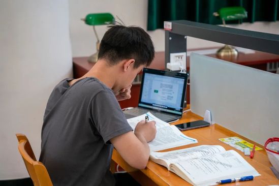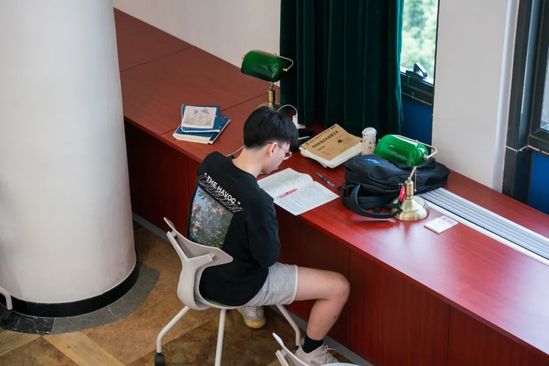 图书馆 安静的图书馆内提笔沉思,在桌椅方寸之间求索知识的无尽彼岸以恒心踏实积累点滴知识,以信心鼓舞勇敢前行,以决心坚持不轻言放弃,奋笔疾书的样子成为青春最好的回忆。在课堂上仔细聆听,在实验室刻苦钻研,在图书馆泛舟书海,在体育馆挥洒汗水,这一幕幕汇聚成开课第一天的新气象。三尺讲台上下,方寸校园之间,“畅游”更大的世界。