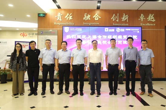 9月21日下午,上合经贸研修院院长郑师,胶州市胶北街道办事处副主任陈超,上合经贸研修院培训部业务主办曾迅,胧爱集团创始人、董事长蒋公宝,胧爱集团联合创始人王栋、总裁办产业创新中心高级经理高维维来我校交流访问。校党委副书记、副校长盛春,管理学院院长赵来军,管理学院党委书记马静波,管理学院副院长张峥、赵靖等热情接待上合经贸研修院一行。 盛春代表学校欢迎上合经贸研修院一行,并介绍了我校的办学历史、学科特色、人才培养、文化传承创新等情况。他表示,双方合作潜力巨大、前景广阔,希望通过和中国—上海合作组织经贸学院紧密合作,提升双方在人才培养、师资队伍建设的层次水平。 郑师介绍了中国—上海合作组织经贸学院建设情况,表示非常希望与上理深入合作,并诚挚邀请学校发挥学科及人才优势合作共建中国-上海合作组织经贸学院。陈超介绍了上合国际枢纽港情况,希望未来双方可以在产学研对接、成果转化、人才就业等方面加强合作。蒋公宝介绍了首届全国大学生职业规划大赛情况及设立管理学院胧爱奖学金方案。 双方就共建中国—上海合作组织经贸学院管理学院,共建中国—上海合作组织经贸学院智慧应急研究院,共建高水平智库,加强联合交流与品牌升级等合作内容进行了深入交流与讨论。 会前,上合经贸研修院一行到访管理学院。赵来军代表学院对上合经贸研修院一行表示热烈欢迎,并介绍了学院基本情况。郑师介绍了中国-上海合作组织经贸学院及上合经贸研修院的情况。