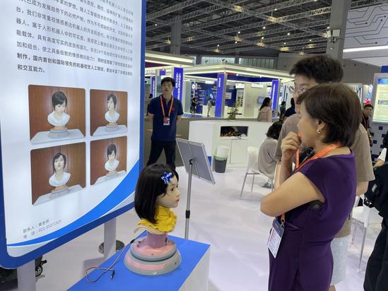 情感模拟机器人展品 展会期间,教育部高等学校科学研究发展中心副主任刘红斌和上海市教委副主任孙真荣分别参观了我校的展区,认真听取了项目介绍与应用情况,并与项目团队进行互动,对我校师生的自主创新能力给予了肯定。