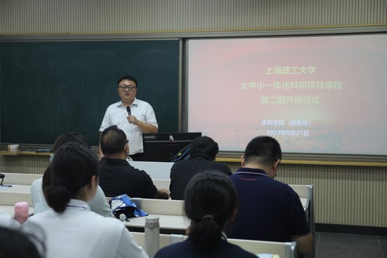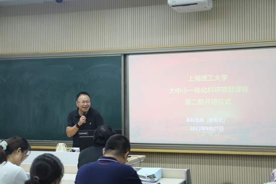 9月21日下午,学校举行大中小一体化科研项目课程第二期开班仪式,携手上海理工大学附属中学开启新一期的大中小一体化科研项目课程。教务处处长甘屹、教务处副处长章国庆、科研项目课程授课教师以及教务处相关人员,上海理工大学附属中学副校长叶理辛、带队老师徐蔚然及附中学生等40余人参加开班仪式。开班仪式由章国庆主持。 甘屹代表学校对附属中学师生表示诚挚欢迎,并表示科研项目课程以其前沿性、学术性、趣味性和灵活性的特点,播撒了科学种子,激发了附中学生的好奇心、想象力和探求欲,切实推进了科教融汇,在教育“双减”中做好了科学教育加法,为学校、为国家培育了一批具备科学家潜质、愿意献身科学研究事业的青少年群体。他祝愿同学们通过科研项目课程的学习在上海理工大学拥有一段美好的学习体验,收获满满。教师代表张晓东分享了自己承担第一期大中小一体化科研项目课程的授课经验,为附中学生如何深入开展科研项目课程的学习提出了宝贵的意见和建议。附中学生代表做交流发言,畅谈了对于科研项目课程学习的期许和规划。叶理辛感谢上海理工大学对于附中特色普通高中建设的支持,塑造了有利于大中小一体化科研项目课程的创新生态,为高中生的工程素养、创新能力的培育提供了一个很好的平台,得到附中学生和家长的欢迎和认同。 开班仪式结束后,科研项目课程授课老师带领学生进入相关的研究所和实验室开展首次教学活动。 大中小一体化科研项目课程是学校推进高等教育与基础教育有机衔接的改革探索,响应了习近平总书记发表的《扎实推动教育强国建设》文章中关于全面提升教育服务高质量发展的能力的论述,把教育、科技、人才三个具有内在一致性和相互支撑性的要素有机结合起来、一体统筹推进,形成了推动双方学校高质量发展的倍增效应。 2021年学校启动第一期大中小一体化科研项目课程,共有38名附中学生参与,8门科研项目课程覆盖能动、光电、管理、外语、健康、出版等六个学院。针对总学时16学时的基本学情、高中学生基础相对薄弱以及科研项目课程多为学科交叉课程的复杂情况,把项目研究中蕴含的科学问题、涉及的基本理论、前沿技术等润物细无声地融入到课程教学中,引领附中学生初探能反映产业或学科前沿技术和最新发展的理论,培养了附中学生发现、描述、分析和解决问题的基本能力。