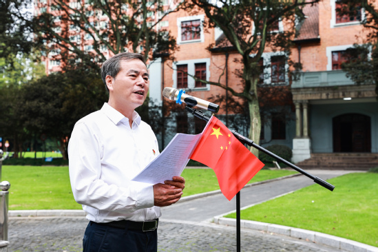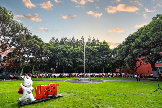 10月1日清晨,为庆祝中华人民共和国成立74周年,弘扬爱国主义精神,引导广大师生砥砺奋进、筑梦前行,学校在军工路516号校区国旗广场举行升旗仪式。校党委副书记、副校长盛春,部分党政部门负责同志和学院党委书记、副书记,离退休老干部、老同志及师生代表200余人参加仪式。仪式由校团委书记刘威主持。