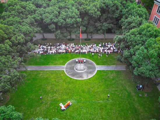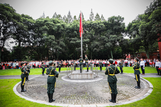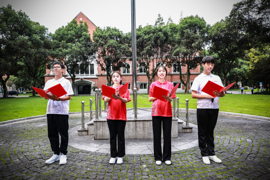 上午7时30分,伴着慷概激昂的出旗曲,国旗班的同学们高擎国旗,昂首挺胸、意气风发,迈着坚定步伐走向升旗台。在雄壮的国歌声中,擎旗手振臂一挥,鲜艳的五星红旗顺势展开,冉冉升起,全体师生注目凝视,表达着对伟大祖国的无限敬意和深深祝福。学生代表张梓桐、祝少然、李欣烨、姚中威同学向祖国献词《奋进新时代 青春勇担当》,深情朗诵展现了上理青年学子刚健自信、胸怀天下、担当有为的向上风貌。
