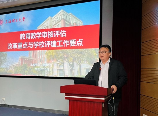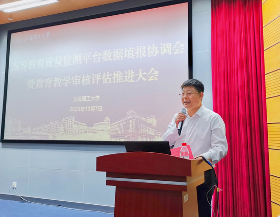 为统一思想、凝心聚力,全力以赴迎接教育部新一轮本科教育教学审核评估,10月7日,学校召开本科教学高等教育质量监测平台数据填报工作暨教育教学审核评估推进大会。副校长张华,教务处负责人,各学院院长、分管本科教学副院长、专业负责人,相关职能部门负责人共140余人出席会议。 会上,本科生院院长、教务处处长甘屹解读了新一轮审核评估的改革重点、学校审核评估工作整体安排、迎评促建的工作方案等内容,希望全校师生充分认识新一轮审核评估的重要意义和内涵变化,各部门、各学院要根据评估方案审核重点,结合办学实际,分阶段、分步骤稳步推进工作;同时,做好广泛宣传动员工作,形成人人关心评估、全员参与评估的良好工作氛围。 同时,本次会议启动了2023年度高等教育质量监测国家数据平台监测数据填报工作。国家数据平台是高等学校教学质量常态监测、审核评估的重要数据来源。各部门要准确把握各项数据的指标内涵,严格按照规定的时间节点,保质保量完成本次本科教学数据采集工作。 张华总结了学校自上一轮审核评估以来,在创新人才培养模式、加强专业内涵建设、推动课程和教材建设等本科教育教学改革方面取得的显著成效。针对本轮审核评估具体工作,他提出了三点要求:一是要深刻认识审核评估对提高人才培养质量的重要性。审核评估是学校教育教学改革、建设和发展成就的一次系统总结,是对学校教育教学工作和人才培养质量的一次全面“体检”,是对学校综合实力的一次“大考”。二是扎实开展自评自建工作。各部门应主动对标找短,列出问题清单,制定措施,抓好落实。三是压实责任,层层发动,全员参与。审核评估是一项复杂的系统工程,需要各部门紧密协作、协同攻关,每一位教职工都要树立“评估工作人人有责”的思想,在评建工作中找到自己的坐标。最后,他强调,学校评建工作时间紧、任务重,各部门、各学院要明确思想认识,对照评估指标,全面审视自身服务本科教育教学工作的情况;要明确工作任务,吃透指标内涵,对标对表逐项落实;要明确时间节点,尽快行动,真抓实干。以本轮审核评估工作为契机,切实推动学校本科教育教学水平再上新台阶。