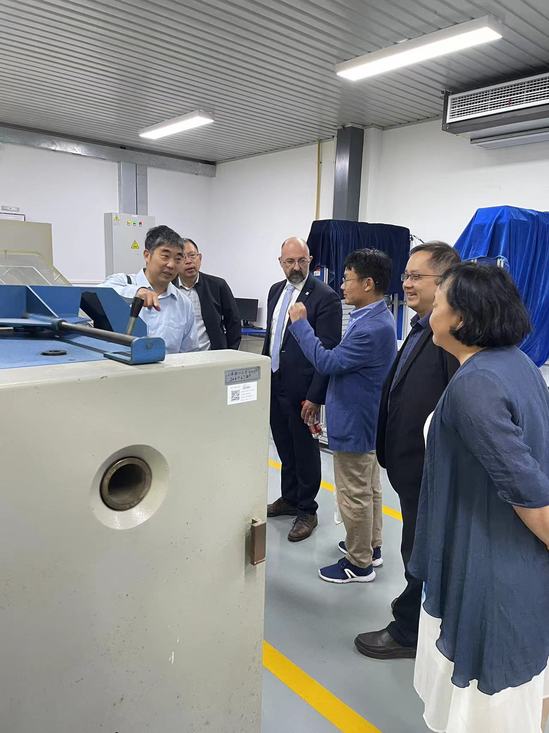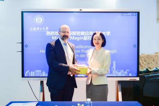 10月 8 日上午, 德国凯泽斯劳滕应用技术大学副校长 Michael Magin 一行来访, 副校长蔡永莲会见了代表团, 国际交流处、机械工程学院相关领导与会。会议由国际交流处副处长徐琳主持。 蔡永莲代表学校对凯泽斯劳滕应用技术大学来访表示欢迎,凯泽斯劳滕应用技术大学与我校已有近 10 年的合作渊源 ,从联合培养硕士研究生、交换生项目起步,2019年两校又共同探索机械工程/机电 一体化专业硕士研究生的合作办学 ,双方在多次合作中建立了深厚的友谊, 同时欢迎德方学生来我校交流学习。 Michael Magin 对学校的热情接待表示感谢,他表示,凯泽斯劳滕应用技术大学非常注重实践教学和对“工匠精神”的培养,并提出在过去的 10 年里 ,上理工赴德学习的学生表现非常优秀 ,希望中德学生间能继续开展更多交流。 会上 ,双方就共同开发利用远程控制实验室事宜进行讨论交流, 探讨更多合作机会,共同培养高水平人才,从而推动两校在联合培养项目方面取得新成果。随后,凯泽斯劳滕应用技术大学一行实地走访机械工程学院国家级装备制造虚拟仿真实验教学中心和专业实验中心。