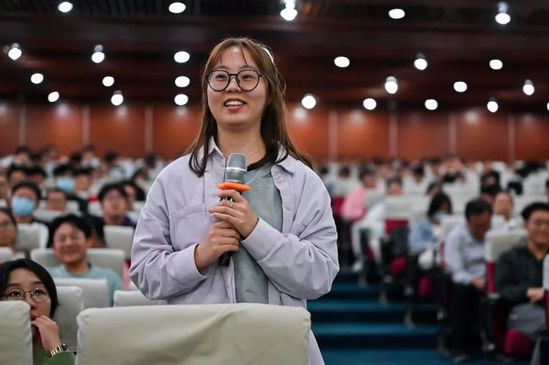 圆桌嘉宾侃侃而谈 在最后的观众互动环节,现场师生踊跃提问,与嘉宾进行交流讨论。多位同学对阿秒科学的未来发展趋势、我国在此领域的研究现状和布局、阿秒科学的应用价值等方面提出了非常专业的问题。通过专家介绍,同学们也了解到令人振奋的消息:我国正在多处规划建设阿秒激光装置,建成后综合指标有望实现国际领先。三位嘉宾对其中一位同学询问的研一新生阅读科研论文的建议也给予了积极回应。通过此次圆桌论坛,借由诺奖得主的学生、同事和合作者的讲述,让师生们更加了解2023年诺贝尔物理学奖的科学原理和意义,也近距离地感受到诺奖得主们不懈追求科学真理、不断挑战科学极限的人格魅力。