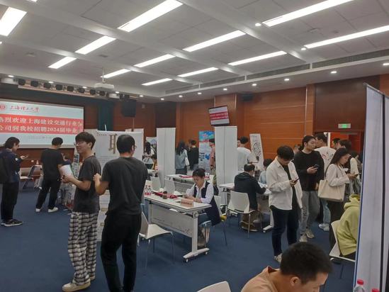 为多措并举共同促进2024届高校毕业生就业,充分发挥央企、地方国企和各类民营企业促进高校毕业生就业的重要作用,10月10日下午,“才荟建交”上海建设交通行业高校巡回招聘会在我校先进制造大楼举办。本次招聘会吸引了中建集团、中铁集团、上海建工集团、上海建科集团、浦发集团、隧道股份、上海城建、上海城投等下属50家优质单位参会,需求1300余人,既有土建施工、建筑设计、工程管理、安全管理、轨道交通等专业岗位,又有行政、人事、财务、营销等通用性岗位,为毕业生带来了丰富的岗位资源。据统计,共吸引了近400余名毕业生参加应聘,现场投递总简历数近1000份。 整个招聘会现场气氛热烈,展位前络绎不绝的毕业生积极与企业代表交流,寻找适合自己的职业机会。各企业认真了解求职学生情况,积极回应学生疑问。上海交通行业高校巡回招聘会上海理工大学站的成功举办,为我校毕业生提供了良好的就业平台和交流机会,也为建设交通行业企业输送更多的优秀人才。