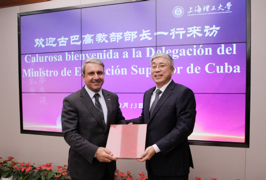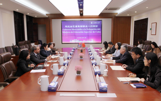 10月13日下午,古巴高教部部长加尔西亚访问我校,由古巴驻沪总领事迪亚斯陪同。校党委书记王凌宇在思晏堂201会议室会见了来宾,党(校)办、科研院、国交处相关人员与会。会议由副校长蔡永莲主持。 王凌宇代表学校对古巴高教部部长一行表示欢迎,他介绍了学校发展历史、人才培养和学科特色等方面情况。今年是中国“一带一路”倡议提出的第十年,具有非常重要的里程碑意义。中古两国人民传统友谊深厚,在深入推进高质量共建“一带一路”合作方面,学校与古巴哈瓦那大学、古巴生物技术和医药产业集团有着多次深入合作,并与哈瓦那大学顺利完成了“中古国际肿瘤诊断与能量治疗联合实验室”的签约与揭牌,互学互鉴,共商共享,在科学研究、技术转化等方面均取得积极成果。他希望,未来中古双方继续携手发挥创新和人才优势,为构建人类命运共同体提供更多智力支撑。 加尔西亚对学校的热情接待表示了感谢。古巴是拉丁美洲第一个和中国建交的国家,他简要回顾了中古两国友好往来的发展历程,并对古巴的高等教育做了简要介绍。他表示,教育合作一直是中国和古巴关系的重要组成部分,古巴高教部非常重视与上海理工大学的友好合作关系,并将给予大力的支持。同时,他发出邀请,欢迎上理工师生到古巴访问交流,了解古巴的文化和教育,增进中古两国人民的友谊。 会上,双方就人才培养、科学研究等方面进行了深入交流,探讨更深层次、更广领域的合作机会,共同培养高水平人才,为进一步推动两国科教发展、促进人文交流、加强双边务实合作贡献力量。