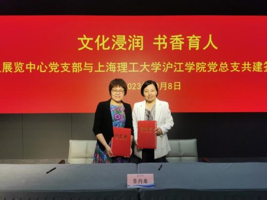 金秋十月,丹桂飘香。为持续深化主题教育成果,推动立德树人育人成效,10月18日,沪江学院党总支全体党员教职工在支部书记陈红的带领下走进上海图书馆(东馆),与上海图书馆会议展览中心党支部共同举行以“文化浸润 书香育人”为主题的共建签约仪式并开展了联组学习。上海图书馆党委书记楼巍,上海图书馆会议展览中心主任、党支部书记吴敏出席会议,签约仪式由上海图书馆会议展览中心副主任、党支部副书记拱佳蔚主持。 首先,楼巍对沪江学院党总支全体党员表示热烈欢迎,他充分肯定了双方在先前共建联建工作中作出的努力和探索,期待双方在文化资源共享共赢、凝聚力量推动文化建设事业高质量发展上作出进一步的合作和创新。吴敏对上图会展中心整体构成、党建工作、文化讲座、宣传活动等方面进行了详细介绍,她重点分享了上图东馆落成之后,这座大阅读时代智慧复合型图书馆对社会的影响和文化贡献。陈红全面介绍了沪江学院工作概况、组织架构以及党建工作情况,她围绕教学科研、人才建设、文化活动等方面详细阐述了沪江学院近年来在学校人文素养教育和美育建设工作中做出的成绩和贡献。会上,双方就党建联建、文化事业合作事项等方面展开了热烈的讨论和交流,一致认为,今后要继续依托各自党支部专业和业务优势,不断深化文化事业交流,共享优质资源、加强服务联动,携手开展人文素养活动、党课讲座等合作事项。最后,沪江学院党总支与上海图书馆会展中心党支部签订了党建联建合作协议。