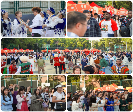 段景莹、祝伟敏应邀出席活动 本次国际文化节共设立了20个展馆,表演唱歌、舞蹈、吟诵等文艺节目15个,累计近2000名师生在校园内相聚。管弦乐合奏《黄自叙事曲》、维吾尔族民歌《一杯美酒》、蒙古国传统舞蹈、俄罗斯歌曲、泰国舞蹈……中外师生们带来的精心准备的文艺演出和传统服饰展示,来自多个国家的国际学生们亲手准备的各国美食,让上海理工大学的学生们感受到了世界各地的独特魅力和深厚文化底蕴,他们互相分享美食,打破文化壁垒,深化文化交流,增进了友谊,体现了文明互鉴的重要性。文艺表演、文化体验、品尝美食……不同文明交汇相融,会场充满欢乐和喜悦。