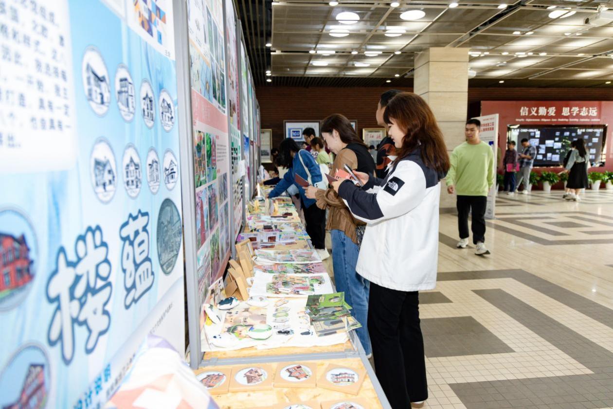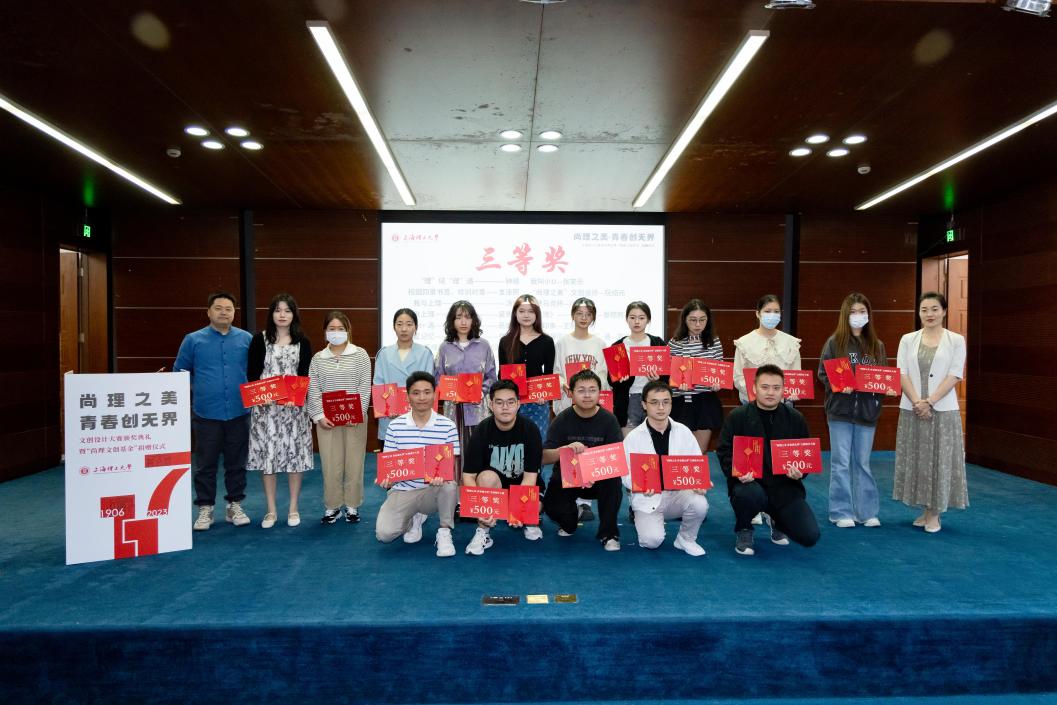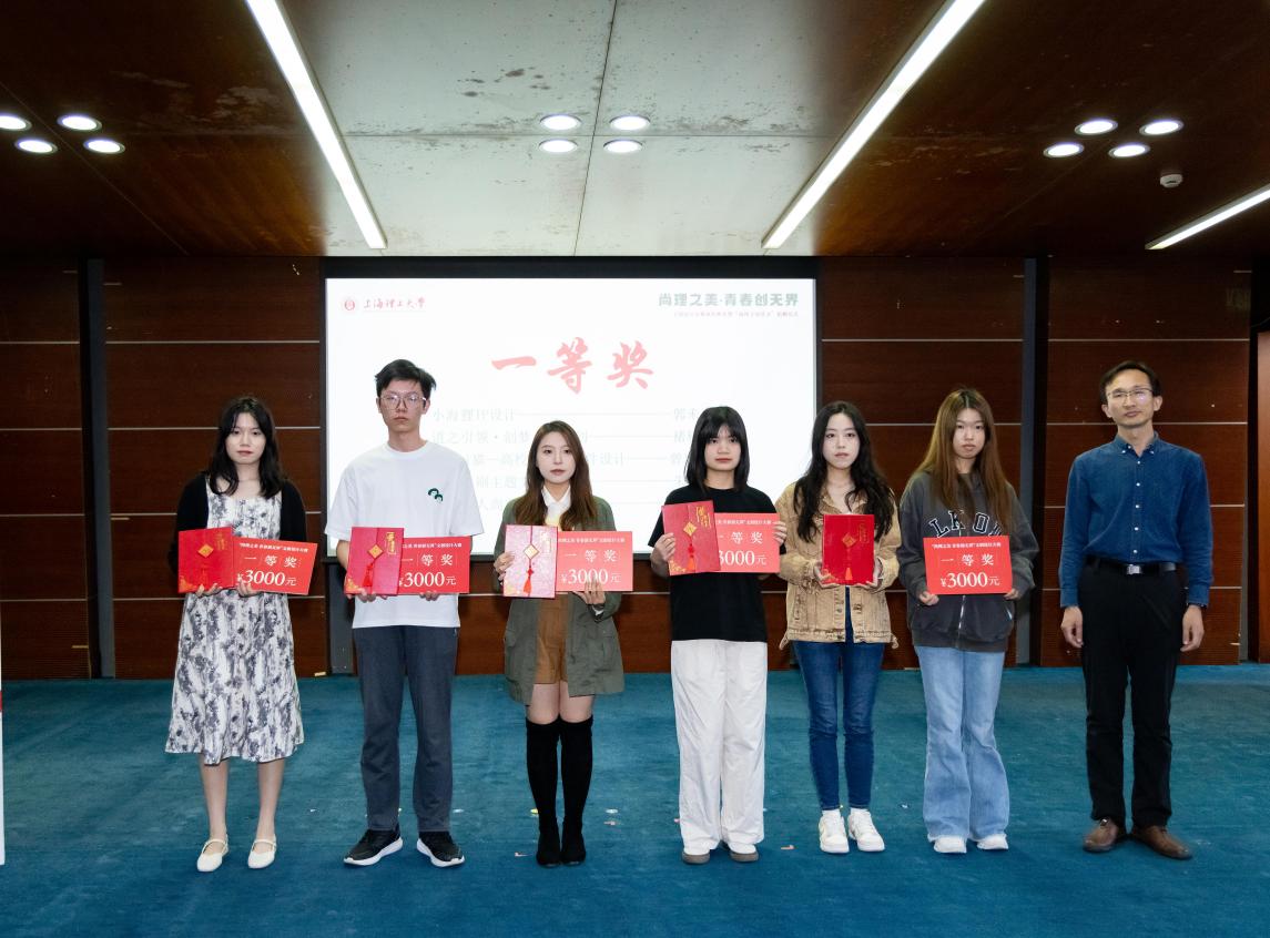陶海峰、王蕊为获奖同学颁发三等奖 活动期间,上海理工大学“尚理之美·青春创无界”文创设计大赛作品展进行同步展出,吸引了众多同学前来打卡。