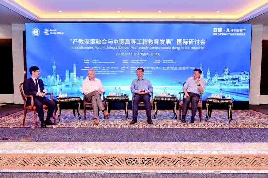 秦政作报告 专家主旨发言后,与会嘉宾、师生与专家以“双碳 AI多元背景下高等工程教育与产业深度融合发展”为议题,进行了圆桌讨论。 此次国际研讨会汇聚中方、德方和企业三方资源与渠道,为中德国际学院中外合作办学的产教深度融合和校企合作搭建了新平台,为未来中德国际学院的创新发展和人才培养提供了新思路,为中德双方高校的高等工程教育创新创造了新机遇。