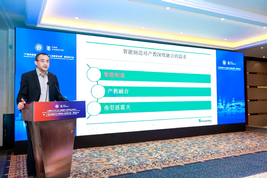 吴健作报告 德国弗劳恩霍夫制造与信息技术研究院北京代表处首席代表穆宏作了题为“智能制造对产教深度融合的需求”的主题报告,他指出智能制造是数据推动的制造,聚焦人机交互、预测性维护、网络安全、弹性生产、自动化和边缘计算。德国弗劳恩霍夫机构是德国工业4.0及智能制造研发的领军者,是创新及产学研合作的引领者。创新、新成果都需要人才,智能制造对产教深度融合及工程技术人才的职业教育发展有了新的需求。产教融合、校企合作,推动学校和企业多种形式合作,构架新的理论及实践课程,建设实习实训基地,为新趋势带来新动能。