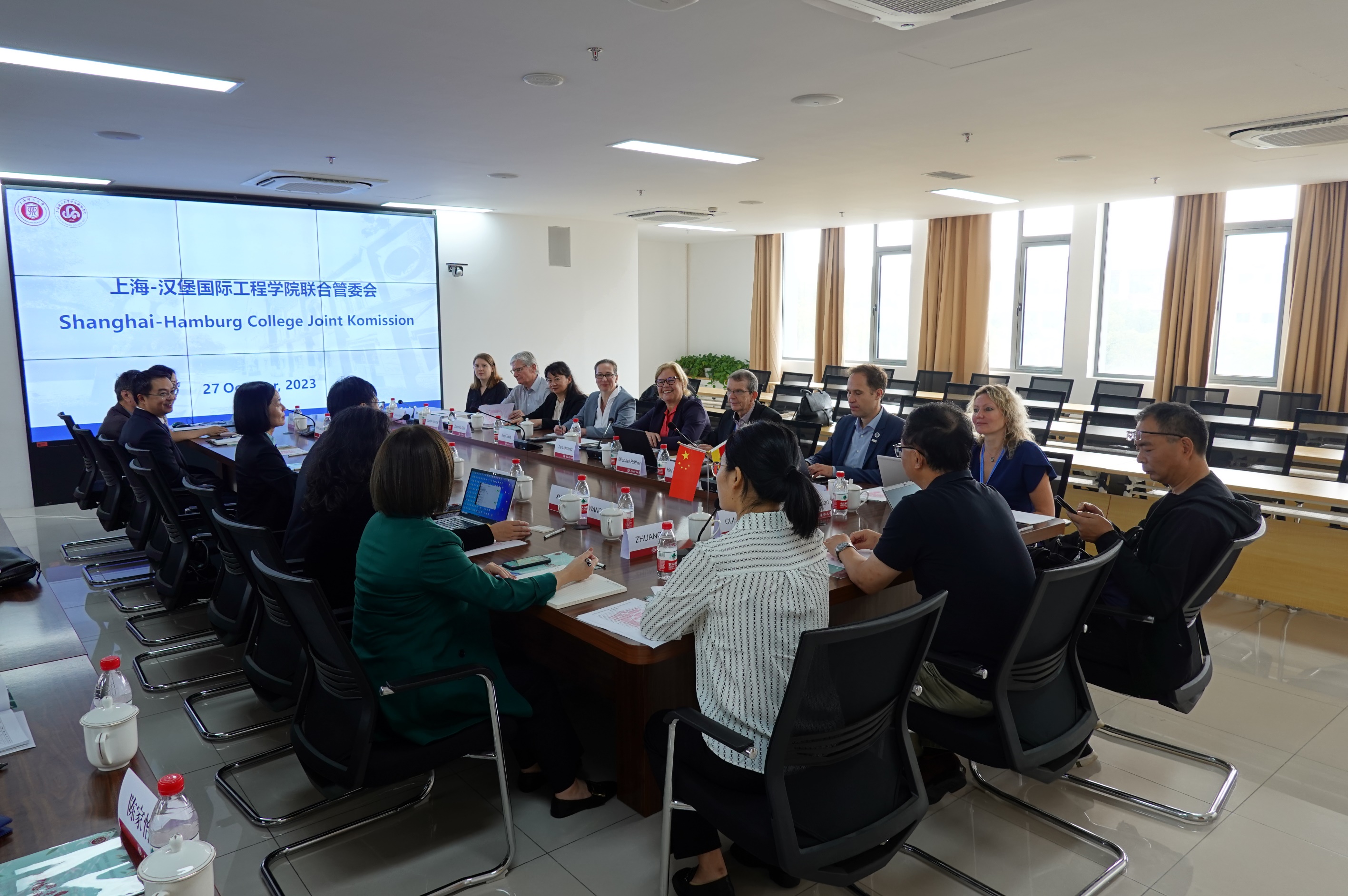 10月27日上午,上海—汉堡国际工程学院2023年度秋季管委会在国合楼召开,副校长蔡永莲主持会议,德国汉堡应用技术大学校长Ute HertaLohrentz、国际交流处处长Ines Anja Kerstin Tobis、技术与信息学院副院长Zhen Ru Dai、对华事务协调人Michael Röther胡特、DAAD专家Caroline Gallardo,我校教务处副处长宋丹萍,中德国际学院党委书记范正飞、常务副院长陈琦、副院长徐芳及中德双方专业负责人等参加会议。