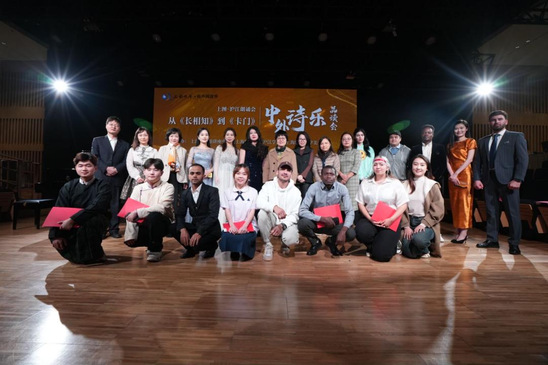 11月14日下午,上海图书馆讲座中心与我校沪江学院共同举办“中外诗乐品读会——从《长相知》到《卡门》”。本次活动是沪江学院为推进人文艺术、美育教育实践而精心策划的一场融诗词朗读、演唱、讲解为一体的文化活动,旨在通过共读共演中外名篇佳作,促进世界多元文化的交流与融合,为构建人类命运共同体贡献一份力量。活动由沪江学院辅导员李娇、国际学生AGAJAN ALLAKULYYEV(土库曼斯坦)共同主持。 诗乐会上,沪江学院师生不仅演绎了《枫桥夜泊》《长相知》《春江花月夜》《将进酒》等中国优秀经典诗词,还朗诵了八个国家的诗歌作品。音乐系教师李花、孙莎声情并茂的诗词演唱,国际学生抑扬顿挫的朗诵,人文素质教研部教师刘永、王聪聪深入浅出诗词讲解,赢得了阵阵掌声。沪江学院特聘教授侯震一以两首歌剧的精彩演唱将活动推向了高潮。