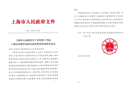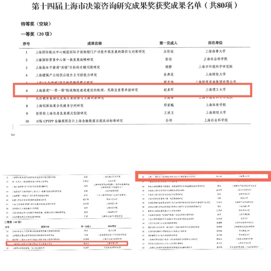近日,上海市人民政府办公厅印发《关于表彰第十四届上海市决策咨询研究成果奖获奖成果的决定》。本届共有80项成果获得奖励,其中,一等奖20项、二等奖40项、三等奖20项。我校管理学院取得了优异的成绩,共有3项成果获奖。其中,学院院长赵来军教授以第一完成人主持完成的《上海推进“一带一路”陆域物流通道建设的瓶颈、思路及重要举措研究》获一等奖,这是我校在上海市决策咨询研究成果奖上的重要突破。公共管理系主任朱水成副教授为第一完成人(赵来军教授为第二完成人)主持完成的《上海“一网通办”提升政务服务与社区治理效能的对策研究》以及系统科学系钱颖教授以第二获奖人、上海理工大学为第二完成单位的《上海市重大疫情全周期预警预判与危机应对研究》均获二等奖。 上海市决策咨询研究成果奖每两年评选一次,是上海市政府设立的决策咨询研究领域的最高奖项,旨在奖励为上海经济、社会、城市发展和本市贯彻落实党中央决策部署和国家战略任务等方面提供决策咨询服务,具有前瞻性、原创性、科学性的课题报告、论文等研究成果。 管理学院一直重视科学研究和智库建设工作,以国家战略和上海经济社会发展需求为导向,有组织地推进科研创新,鼓励和支持学院教师积极探索、勇于创新,争出高质量科研成果,并将科研成果积极转化到经济发展和社会服务中,为国家及上海提供决策咨询及智力支持。管理学院将以此次获得上海市决策咨询研究成果奖为契机,继续围绕国家和上海经济社会发展中的重点、热点、难点问题,更好地发挥建言献策、桥梁纽带、人才培养等作用,多出成果,出好成果,为上海市委、市政府科学民主依法决策提供智力支持,力争为上海加快建设具有世界影响力的社会主义现代化国际大都市做出更多的贡献。