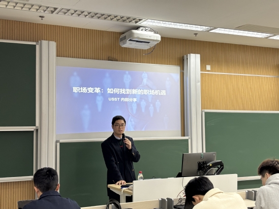 李群辉讲解指导 随后,龚飞以“卷”这个词为切入点,结合职业规划大赛就业赛道,对与会同学进行指导,通过讲解自身的工作经历,分析当代职场变革,向应届学生分享如何把握就业“黄金期”,抓住就业机会。讲解过程中,龚飞与现场同学积极互动,通过分析应届学生职场基本素养及能力,表示学生应不断提升自我学习能力和自我驱动能力。