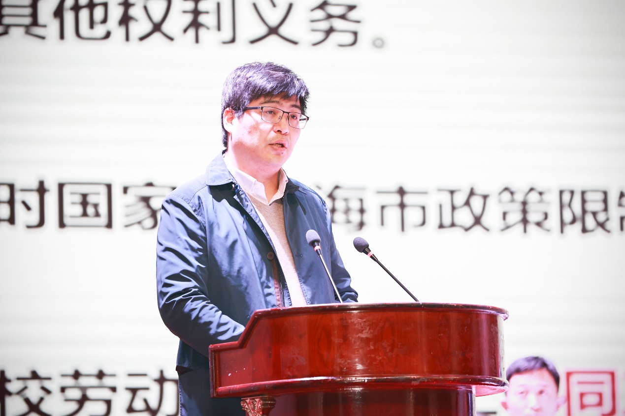 刁节文作报告 人事处副处长黄平在《上海理工大学企业年金方案》报告中介绍了企业年金方案的整体情况。企业年金是调动职工的劳动积极性、建立人才长效激励机制、增强单位凝聚力、促进单位健康持续发展的重要组成部分,建立企业年金将进一步增强单位的凝聚力,更好地激励职工。