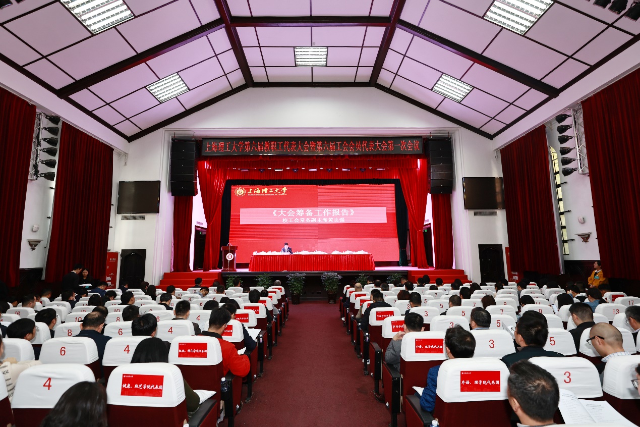 11月21日,上海理工大学第六届教职工代表大会暨第六届工会会员代表大会开幕式在大礼堂举行。市教卫工作党委副书记、市教育工会主席张艳萍,市教育工会基层工作部部长沈瑶,上海交通大学校长助理、工会主席于朝阳,全体在校校领导出席会议,会议由校党委副书记、校工会主席孙跃东主持。214名正式代表,49名列席代表、4名特邀代表参加会议。 预备会议上,代表们听取了《大会筹备工作报告》《代表资格审查报告》并审议通过了《大会表决办法》(草案)、《大会主席团、秘书长名单》(草案)、《大会执行主席、主持人名单》(草案)和大会议程(草案)。