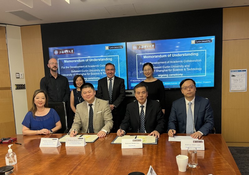 代表团参观新加坡管理学院校园并与留学生交流合影 访问澳大利亚科廷大学,共同签订两校合作备忘录,并达成商科领域本硕联合培养的合作意向 11月17日,代表团一行应邀访问澳大利亚科廷大学,科廷大学全球协理副校长张啸天、科廷大学副校长Vanessa Chang等热情接待了代表团。本次访问科廷大学是在今年4月13日科廷大学常务副校长Seth Kunin一行访问我校时发出邀请的回访活动。双方首先就两校的合作友谊进行了回顾,随后就合作领域进行了会谈并签署了两校合作备忘录。在会谈期间,双方对商科国际认证情况和认证经验进行了交流,并由此初步达成AACSB认证专业内的本科生3+1和研究生1+1双学位联合培养的合作意向。出席本次会谈的人员还有:科廷大学商法学部国际化院长Rob Evans、跨国合作与发展经理Guy Harris、全球伙伴关系高级顾问Grace Ang以及我校管理学院系统科学系在澳访问学者钱颖教授。此行签约团还参观了科廷大学的校园环境和基础设施,并对科廷大学海外办学、国际学生培养和课程管理等方面的情况进行了调研。