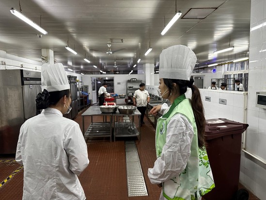 走进食堂,进入后厨,看到灯火通明、热气腾腾,伴随着机器运转的轰鸣声,师傅们已经开始紧张的忙碌着了。食堂阿姨说,凌晨3点就要开始准备早餐,后厨每天仅休息4个小时。厨房如战场,这绝对是一场与时间的较量,一件件看似普通无奇的食材,经师傅们的一番洗、切、蒸、煮、煎、炸、炒之后,在锅内成型,变成一道道色香味俱全的美食。每一只烧饼、每一块火腿、每一杯豆浆,背后都有一群劳动者们的默默付出。