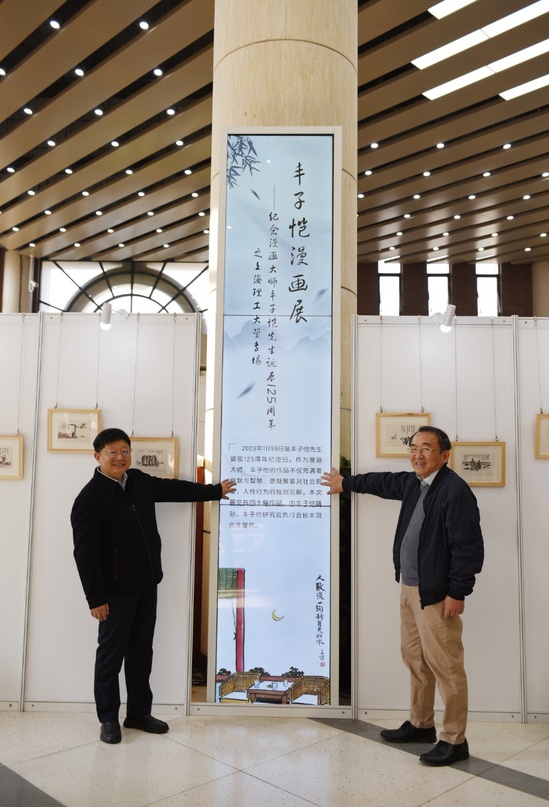 11月9日是丰子恺先生诞辰125周年纪念日,我校图书馆特邀丰子恺嫡孙、丰子恺研究会执行会长丰羽为师生带来 “丰子恺漫画欣赏”讲座。为了纪念一代大师,陶冶师生情操,图书馆策划 “丰子恺漫画展”,为上理“丰子恺迷”们带来为期一个月的文化盛宴。11月27日,“丰子恺漫画展”开幕,副校长张华出席开幕式。 丰子恺在漫画、书法、翻译等各方面均有突出成就,先后出版的书法和画集、散文著作、美术理论和音乐理论著作等共达160余部。他的画作多以儿童作为题材,幽默风趣,反映社会现象。其中漫画以“曲高和众”的艺术主张和“小中能见大,弦外有余音”的艺术特色备受世人青睐。 图书馆本次共展出丰子恺作品四十幅,均由丰羽先生提供。展览地点为军工路516号湛恩纪念图书馆一楼大厅,展览时间至12月中旬。希望我校师生能够借此机会深入领悟丰子恺的“三心”——童心、诗心、佛心,近距离对话漫画大师,增强文化自信。
