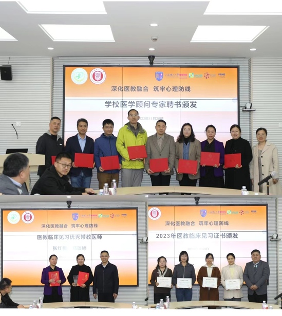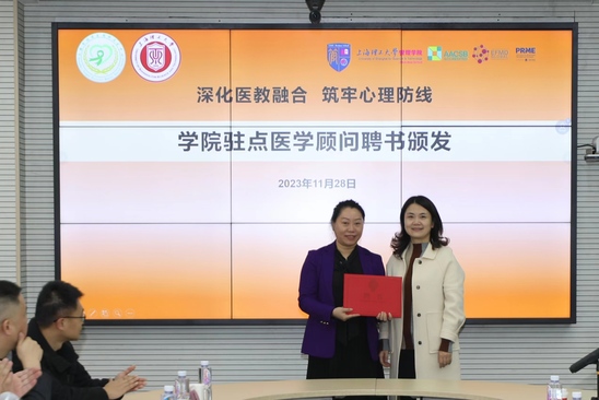 11月28日,我校心理健康工作二级学院医疗驻点签约及医学顾问聘任仪式在管理学院举行。杨浦区卫健委副主任王颖丽,杨浦区精神卫生中心党支部副书记、院长季敏,我校学生处处长何炉进、管理学院党委书记马静波,杨浦区卫健委、上海市市东医院、杨浦区精神卫生中心、学校学生工作部(处)、研究生工作部、管理学院有关工作负责人、医生代表、学校专兼职心理老师、辅导员代表出席。签约聘任仪式由学校心理健康教育与咨询中心主任杨颎主持。 何炉进和季敏分别代表医教双方单位签署学院医疗驻点工作合作备忘录,管理学院党总支副书记蒲莹莹为学院医疗驻点医学顾问杨浦区精神卫生中心心理咨询与治疗中心、心理测量中心主任郑琰婷医生颁发聘书。 王颖丽在讲话中充分肯定了杨浦区精神卫生中心和上海理工大学深化医教结合服务内涵、提升服务效能所做出的切实举措。这次推动专科医生下沉高校二级学院、定点包干,正是在前期工作基础上,对医教结合心理健康服务内涵的再挖掘、再升华。同时,她还提出了心理健康服务工作“准”“实”“新”的发展方向,共同护航学生“心”健康,践行人民城市理念,推动杨浦高校心理健康事业进入新阶段。 马静波介绍了管理学院学科建设、人才培养、学生特点,并指出学院心理工作始终立足当下大学生实际特点,有针对性地深入推进。他对本次心理健康工作医学顾问驻点管理学院,及时为学生提供心理相关咨询和问诊,扎实推进医教融合充满信心。希望通过双方的深入合作,先行试点,加强与区精神卫生中心的深入融合,共同筑牢学生的心理防线。 随后,与会各嘉宾从医教资源、队伍建设、合作展望等方面进行了充分交流,推动杨浦高校心理健康事业进入新阶段。签约仪式上,还颁发了学校心理健康医学顾问聘书、学校老师参与临床见习证书以及临床见习优秀带教医师证书。 上海理工大学与沪上精神医学相关医院的合作,经过10年的探索与耕耘,从2013年与杨浦区精神卫生中心首次签订合作协议,到2021年与上海市精神卫生中心签约覆盖到学校的所有校区,再到此次杨浦区精神卫生中心心理健康医疗服务驻点下沉到上海理工大学二级学院,开启上海市首个医院、学校心理中心、学院的三方共建试点工作,为进一步提升心理育人能级,为促进平安校园建设、健康中国建设齐心协力。