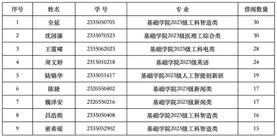 阅读之星名单(截止2023.11.29) 供稿:图书馆 |