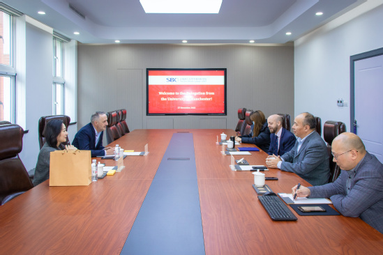 11月27日下午,曼彻斯特大学国际处处长理查德·柯顿(Richard Cotton)、曼彻斯特大学中国中心主任傅潇霄(Sherry Fu)来访中英国际学院,就高层次项目和科研合作进行交流和探讨。中英国际学院执行院长鲁伯特·沃德(Rupert Ward),常务副院长单彦广和内设相关部门负责人参加座谈。 鲁伯特·沃德对理查德·柯顿一行来访表示热烈欢迎,介绍了学院历史沿革、办学规模和办学特色等情况。单彦广就人才培养、专业建设和国际认证作简要介绍,对进一步推进双方院校高层次项目和科研合作提出意见建议。他表示,中英国际学院融合了中英两国优质教育教学优势,近年来开展了一系列国际认证、师生互访和学术交流活动,充分发挥中外合作办学示范引领和辐射带动作用。希望双方进一步加强沟通交流,在人才培养、高层次项目、学术科研等方面开展更高层次、高质量的合作,实现优质教育教学资源共享,推动双方院校国际化办学高质量发展。 理查德·柯顿对学院热情接待表示感谢,简要介绍了曼彻斯特大学的基本情况以及优势和特色专业。希望通过此次来访进一步加强双方院校在高层次项目和科研合作等方面的深入交流与合作。 座谈结束后,理查德·柯顿一行参观了复兴路校区图书馆。