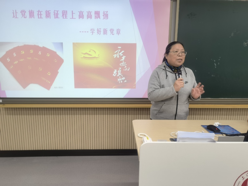 学院“学党史、促党建”辅导员陈瑞芳老师做题为“让党旗在新征程上高高飘扬——学好新党章”主题报告,她强调了党章对于党员的要求和标准,深入浅出地讲解从一大到二十大党章的世纪历程,结合党史、国情和时代特征,使全体积极分子对新党章的内涵和要求有了更加深刻的理解。