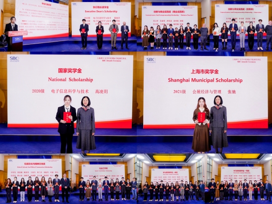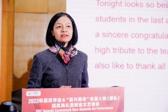 12月12日晚,中英国际学院2023年度奖学金&“复兴英华”年度人物(团队)颁奖典礼暨新生文艺晚会举办。副校长、中英国际学院院长蔡永莲,上海市徐汇区天平街道团工委副书记彭鹏,中英国际学院党委书记李妍,执行院长Rupert Ward,常务副院长单彦广,党委副书记、副院长蔡卉,语言、教育与文化学院主任Gordon Callan,工程与计算学院主任Adrian Chong,会展管理高级讲师Tony Ryan出席活动。 书海立志,学有所成 蔡卉介绍了学院奖学金的评定情况。2023年度共有324名同学获得各类奖学金,其中有3名同学获得学院执行院长奖学金,各有1名同学获得上海市奖学金与国家奖学金。国家奖学金获得者高凌玥同学分享了她的学习方法和心得体会,鼓励在场的同学们朝着梦想的方向前进。