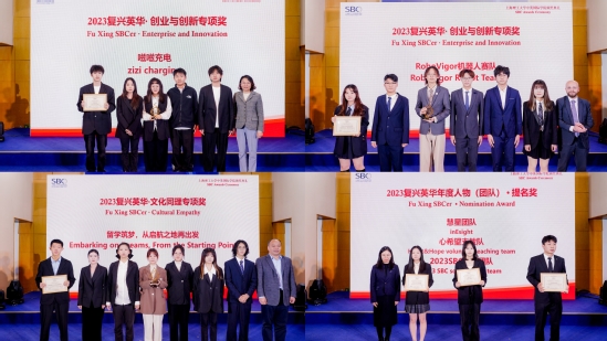 奖学金颁奖 聚才成炬,团队光华 在过去的一年里,学院里涌现出众多优秀的学生团队,在各个领域绽放光芒。一部短片带领所有观众回顾了2023年度6个杰出团队的卓越风采和非凡英姿。最终,“嗞嗞充电”团队、“RoboVigor机器人赛队”、“留学筑梦,从启航之地再出发”团队荣获“复兴英华”年度团队奖。
