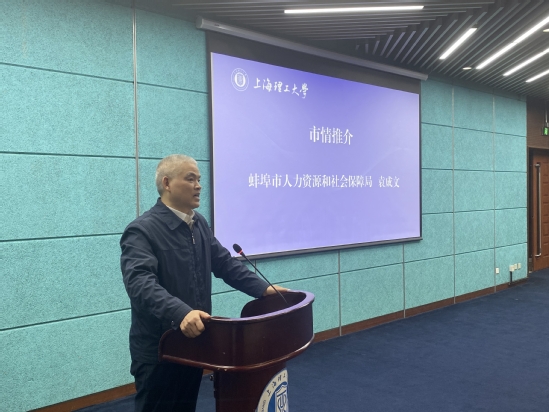 12月14日,蚌埠市“2023年招才引智高校行”上海站宣讲招聘活动在我校举办。蚌埠市人力资源和社会保障局局长袁成文,蚌埠市人力资源交流中心主任邹振华,学生处副处长、学生就业中心主任冯磊,研究生工作部副部长、研究院副院长王张琦,来校招聘用人单位、辅导员、在校学生等相关人员参加活动。 袁成文首先代表蚌埠市对上海理工大学长期以来给予蚌埠市的支持和关心表示衷心感谢。他围绕蚌埠市的历史文化、区位优势、产业特色、创新氛围等介绍了市情,重点对大学生就业创业、人才政策、五大产业集群等做了详细推介,邀请广大高校毕业生到蚌埠干事创业、安家乐业。与会相关用人单位围绕企业基本情况、企业文化、2024校园招聘计划、人才培养与发展等方面进行了重点推介。 上海理工大学与蚌埠市长期保持密切交流互访,校地双方有着非常广泛而深入的产学研合作。本次招才引智活动的开展是双方进一步深化校地区域合作、推进协同发展的具体行动,也是搭建校政企交流平台、拓展毕业生就业渠道的积极实践。