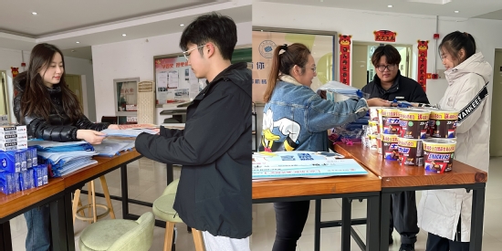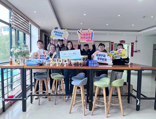 毕业班辅导员为考研学子发放“考研暖心包” 随后,毕业班辅导员为考研学子发放“考研暖心包”,礼包中有为同学们精心准备的“能量加油棒”和文具用品,让备战考研的同学们倍感温暖。刘德强亲切关心了考研学子的准备情况,并鼓舞同学们以平常心应考,考出理想成绩。同学们纷纷表示,一定会抓住最后的复习时间,全力以赴,努力拼搏,迎接挑战,用优异的成绩回报家长和学校。