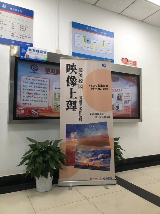 文以载道,画以承文, 从1906到2023,上海理工大学历经了百年风雨,岁月的洗礼使这座百年校园更具风韵,走遍上理的角角落落,于校园百态中捕捉时光的印记。 恰逢校庆117周年,基础学院第三学生党支部策划了以“映像上理·最美校园”为主题的美术作品征集活动,聚焦文明校园创建、聚焦117周年校庆,2023级学生们用手中的画笔绘出映像中的最美校园,为创全、为母校117周年华诞献出最诚挚的祝愿。 选出的部分优秀作品,进行了线上展览,为构建虚实结合的“以美育德”空间及“美育场域”,学院在1100校区申一教部分楼层打造艺术长廊,进行线下布展,充分培育学生发现美、表现美、创造美的能力,强化美育实践体验,在实践中获得大量美的直观感受和情感,树立健康的审美情趣和审美标准,进一步培育学生对美的欣赏能力、表现能力和创造能力,让美学融入到各个专业大类,助力专业学习发展。 本期“映像上理·最美校园”主题画展,是1100艺术长廊美术作品首秀,这些作品均为2023级大一学生原创,充满勃勃生机。学院期望借助1100艺术长廊,打造美育实践基地和品牌,实现“环境育人,空间育人”,在潜移默化中以美启真、以美怡情、以美达善,提升基础学院学生的审美情趣和人文素养。 1100艺术长廊作为基础学院以美育德、以美怡情、以美增智的重要实践场所,在不久的将来,也将会和艺术大家合作,邀请他们展示其优秀作品,各美其美、美美与共,推动校园文化建设和美育实践的新发展。